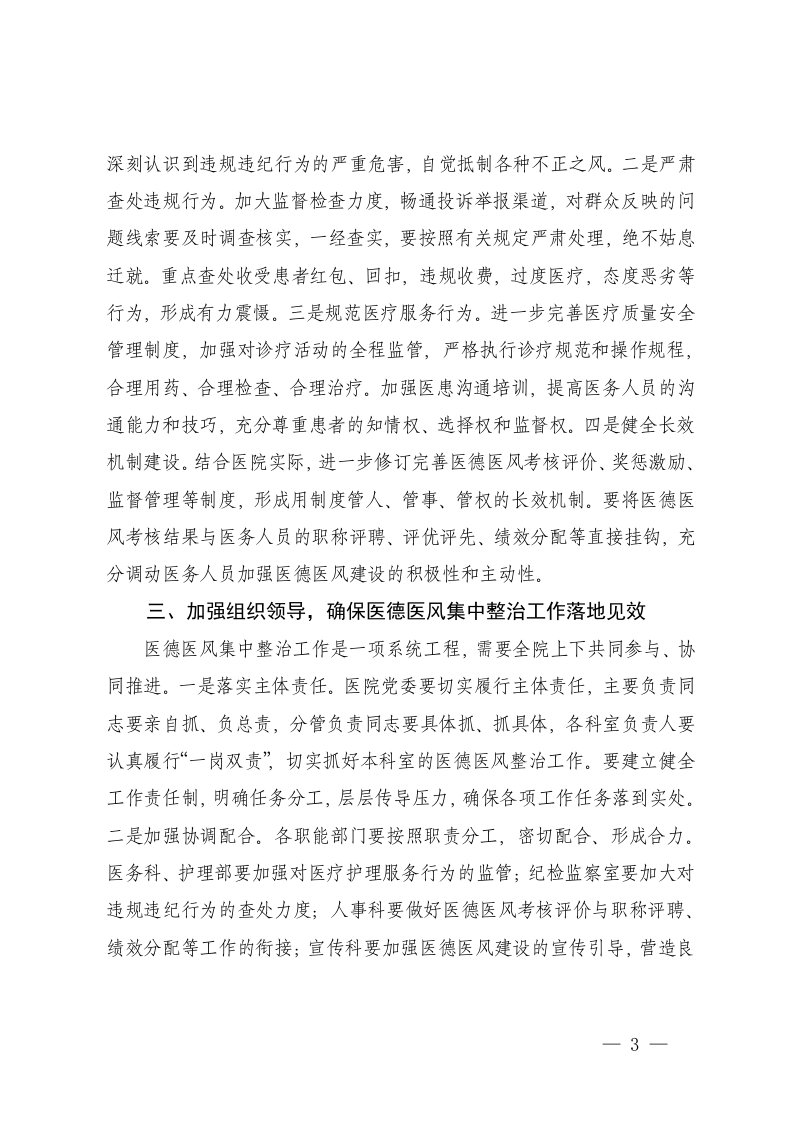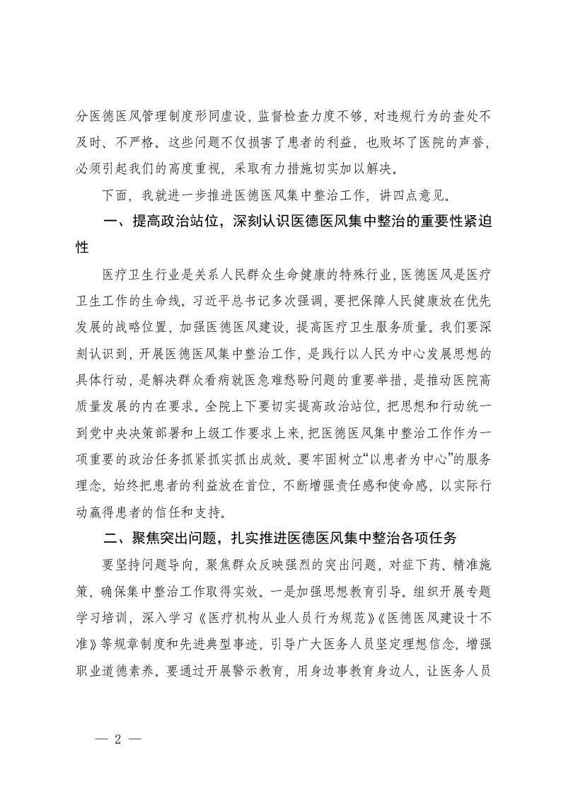 标题:2025年在医院医德医风有关问题集中整治工作推进会上的讲话