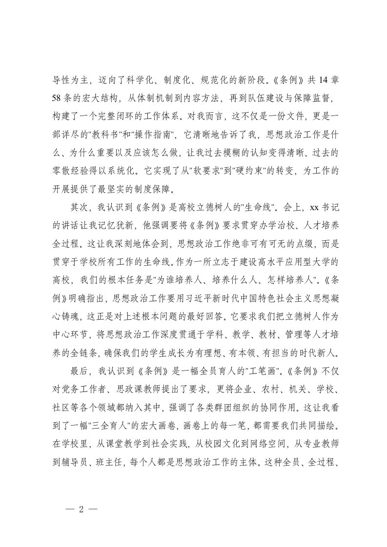 大学老师法院院长领导2025年学习中国共产党思想政治工作条例心得体会
