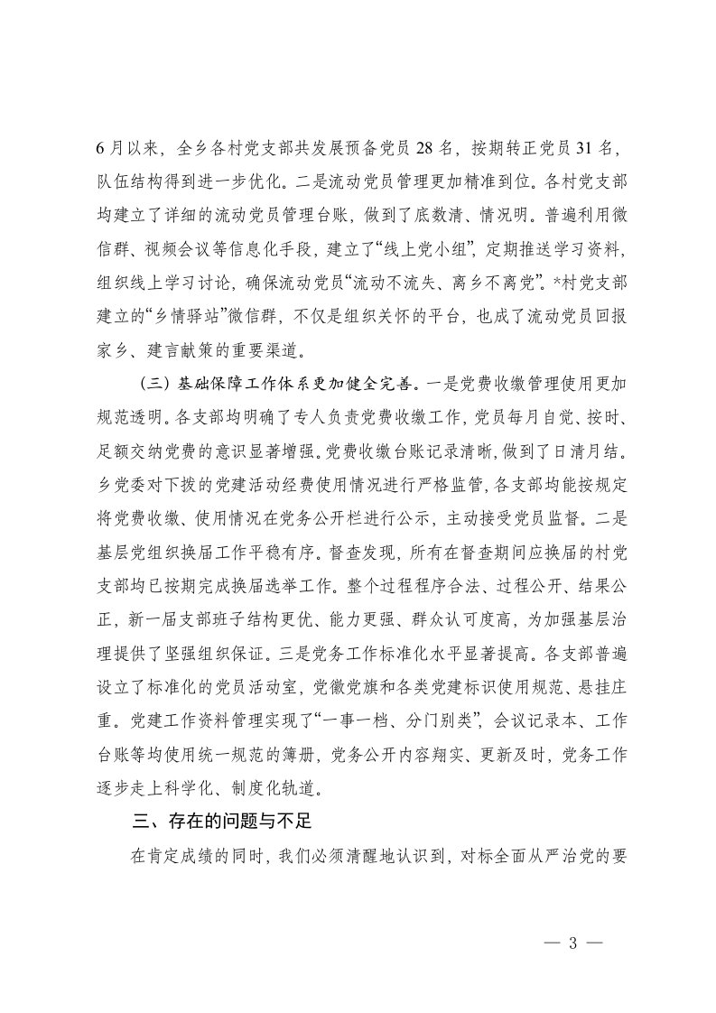 关于某乡基层党组织建设基本制度执行情况回头看的督查报告及基层党建工作重点任务推进会议上的讲话