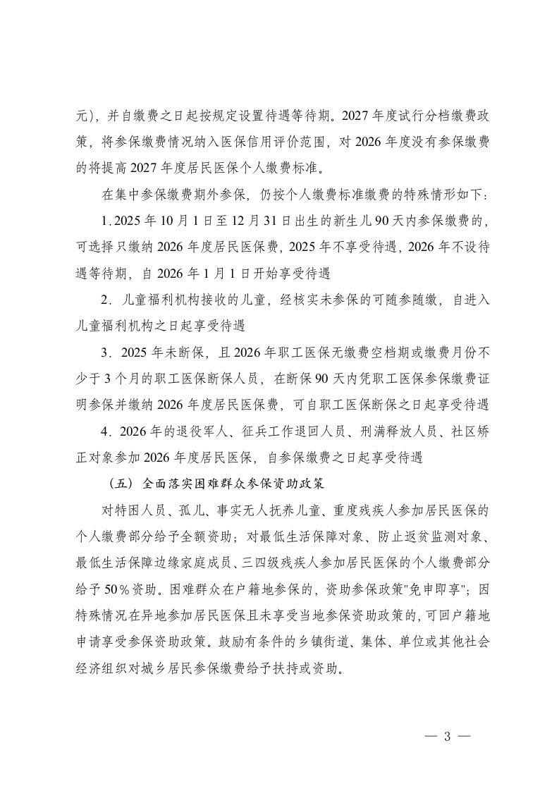 标题:2篇2026年度城乡居民基本医疗保险参保缴费工作方案
