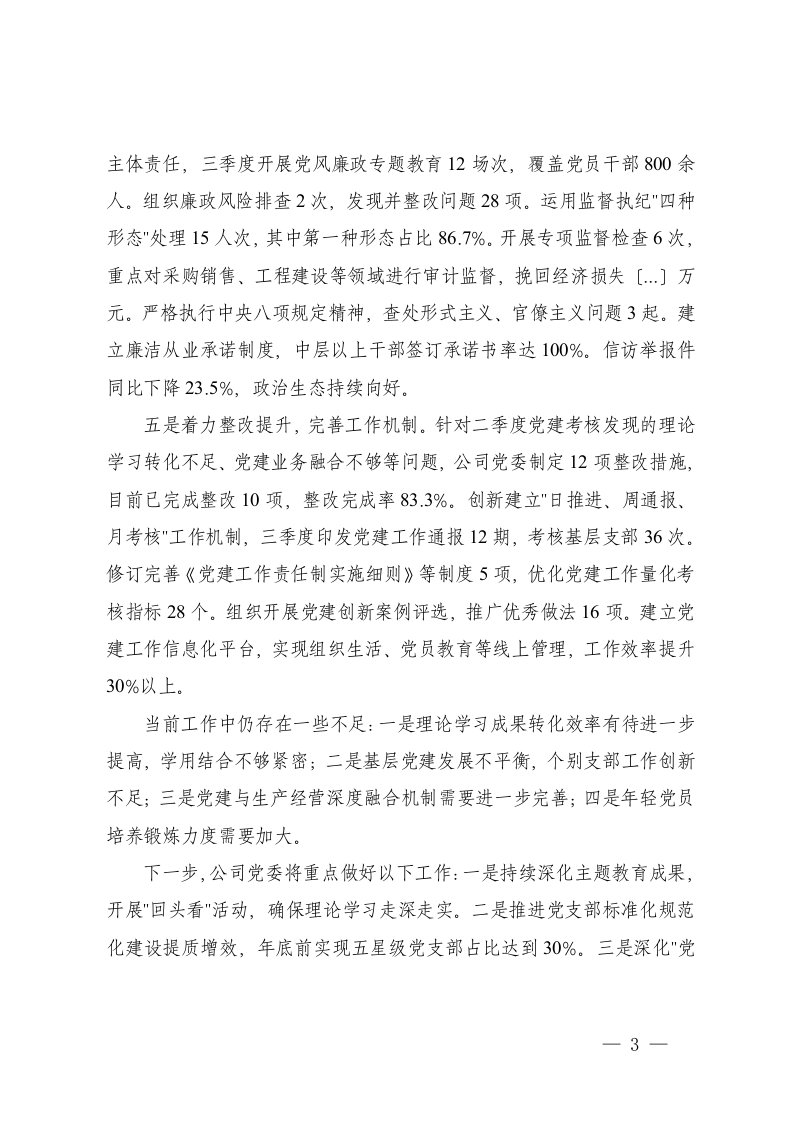 标题:5篇党支部2025年前三季度党建工作总结