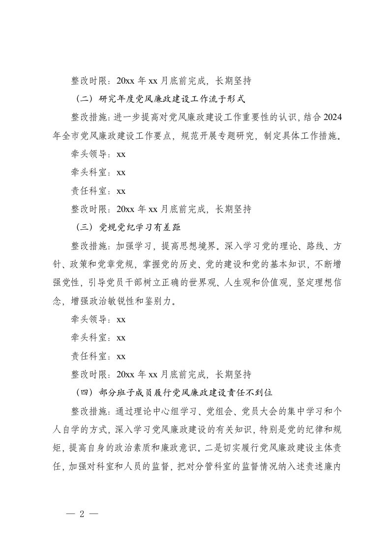 标题:2025-2026年党风廉政建设责任制检查考核反馈意见整改落实方案