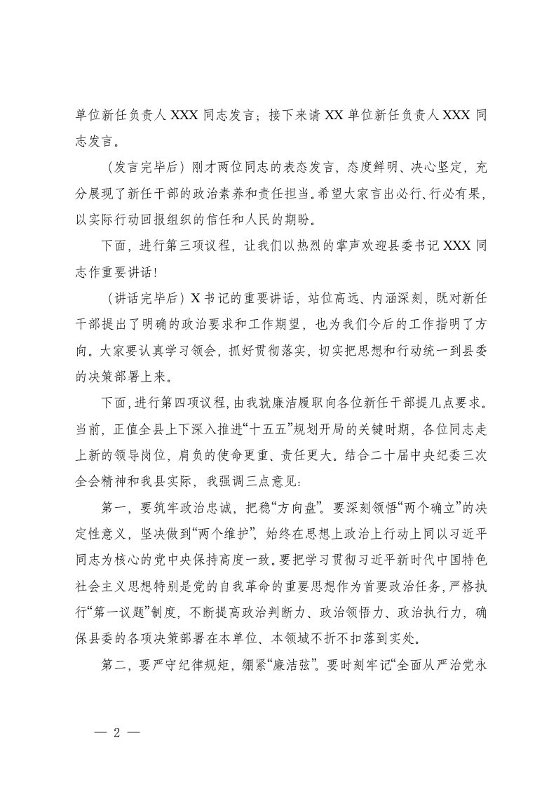 主持词,领导干部,纪委书记2025-2026年县纪委书记在新任领导干部任职大会上的主持词主持词,领导干部,纪委书记2025-2026年县纪委书记在新任领导干部任职大会上的主持词