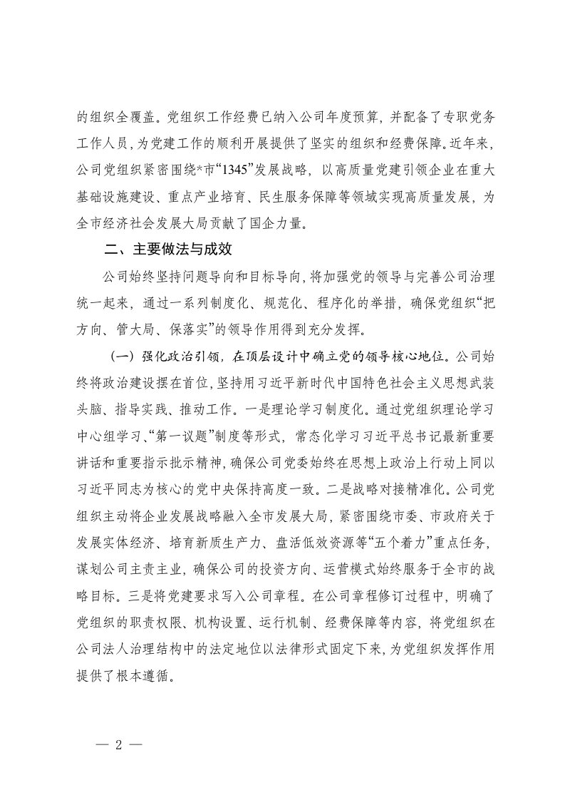标题:2025年关于全省国有企业落实两个一以贯之将党的领导融入公司治理情况的调研报告