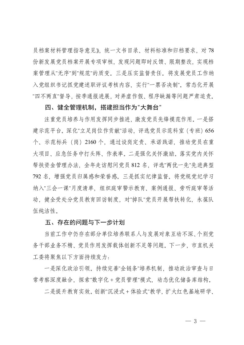 标题:关于市直机关工委2025年度发展党员工作情况的报告镇发展党员工作三年自查报告