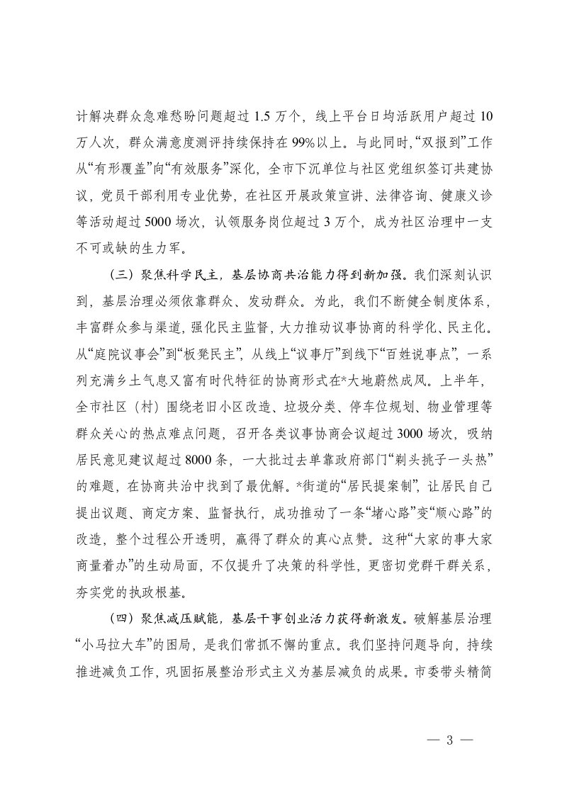 在2025年市委党建引领基层治理半年工作推进会上的讲话打好党建引领基层治理硬仗半年工作推进会上的讲话