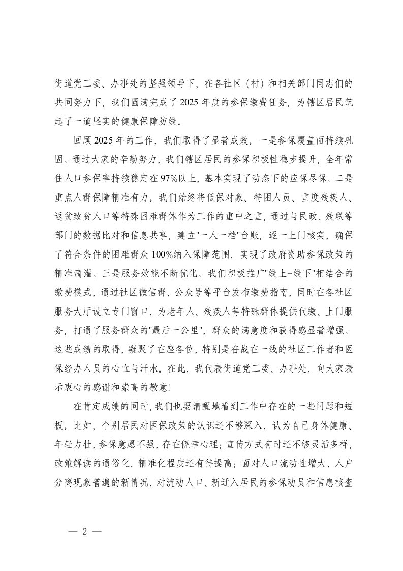 在区2026年度城乡居民基本医疗保险参保缴费工作动员部署会上的讲话提纲城乡居民基本医疗保险参保缴费安排部署会议上的总结讲话