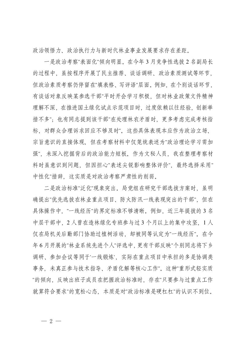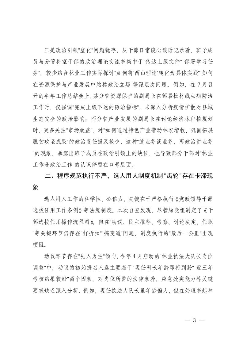 专项整治,报告,党性分析2026年林业局班子成员副局长选人用人专项整治党性分析报告专项整治,报告,党性分析2026年林业局班子成员副局长选人用人专项整治党性分析报告