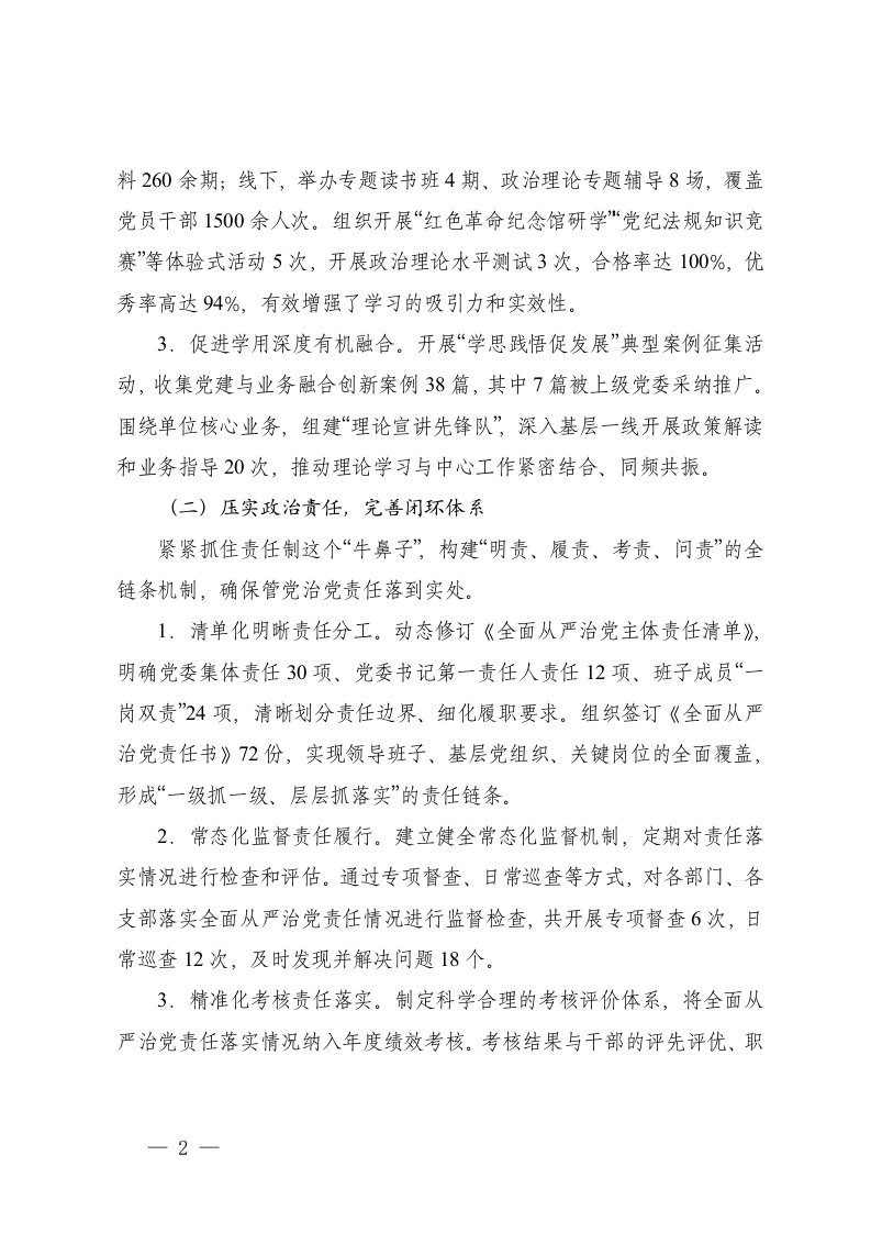 标题:单位2025年度落实全面从严治党工作总结工作计划