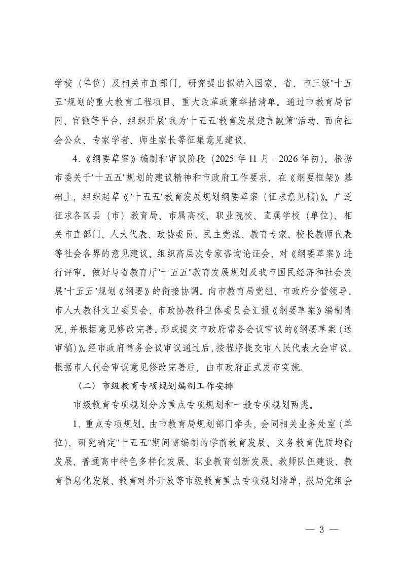 教育局十五个五年教育发展规划编制工作方案及在专题研究十五个五年规划工作会议上的讲话