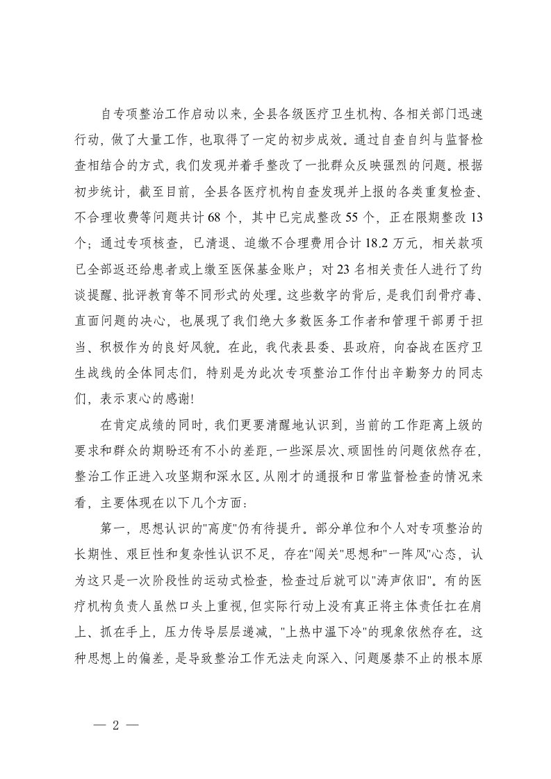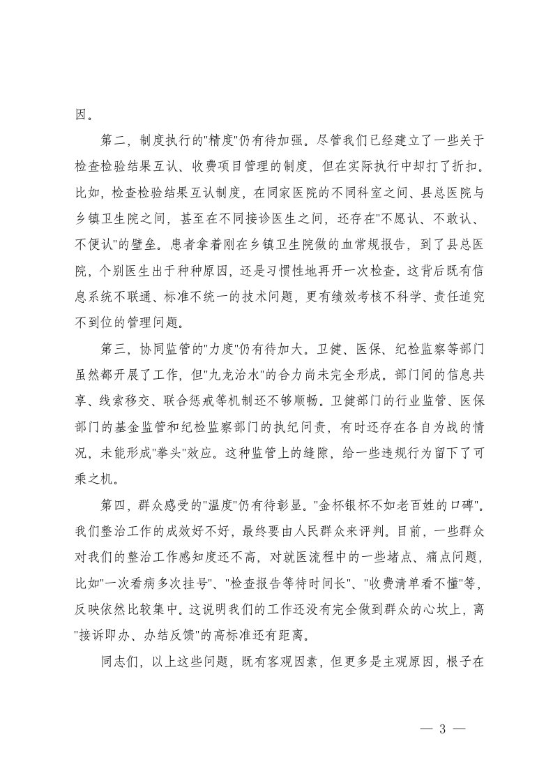 在整治重复医疗检查检验违规收费问题工作推进会上的讲话及卫生健康局调研专项整治工作座谈会上的讲话