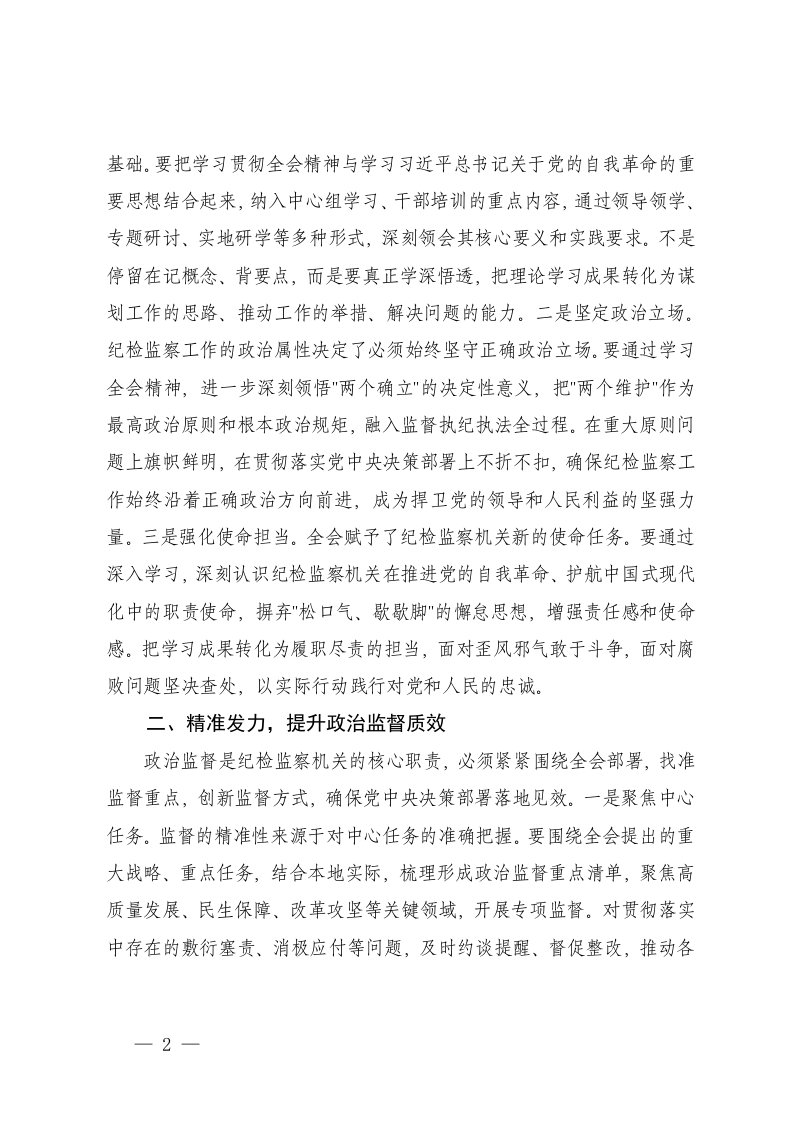 2025年纪检监察学习党的二十届四中全会精神研讨发言以忠诚干净担当的实际行动纵深推进全面从严治党