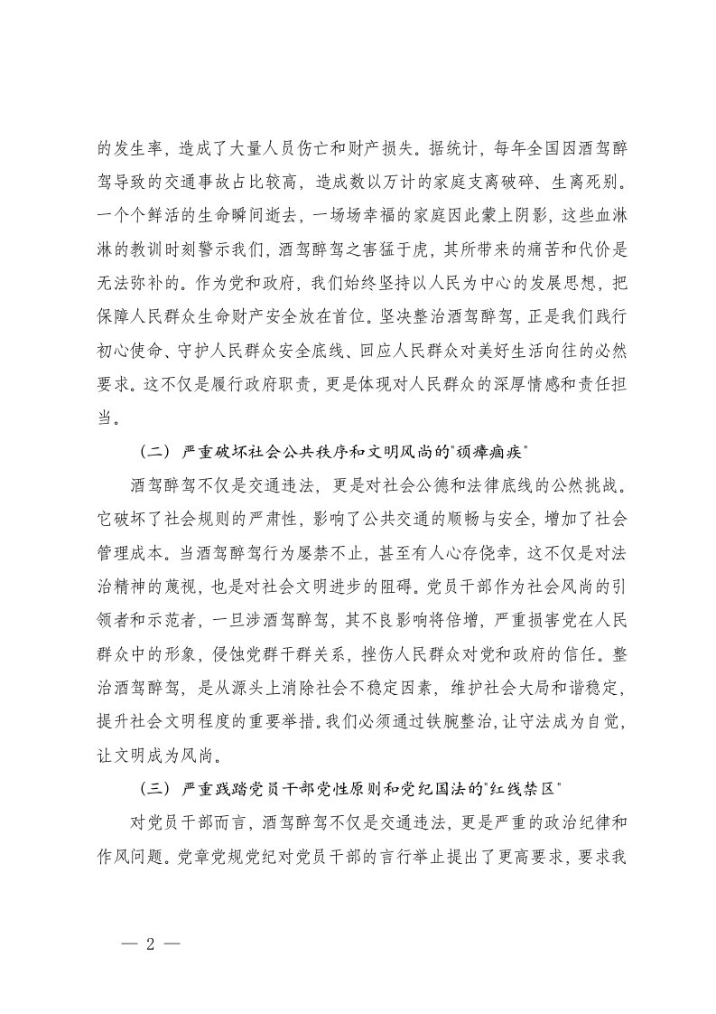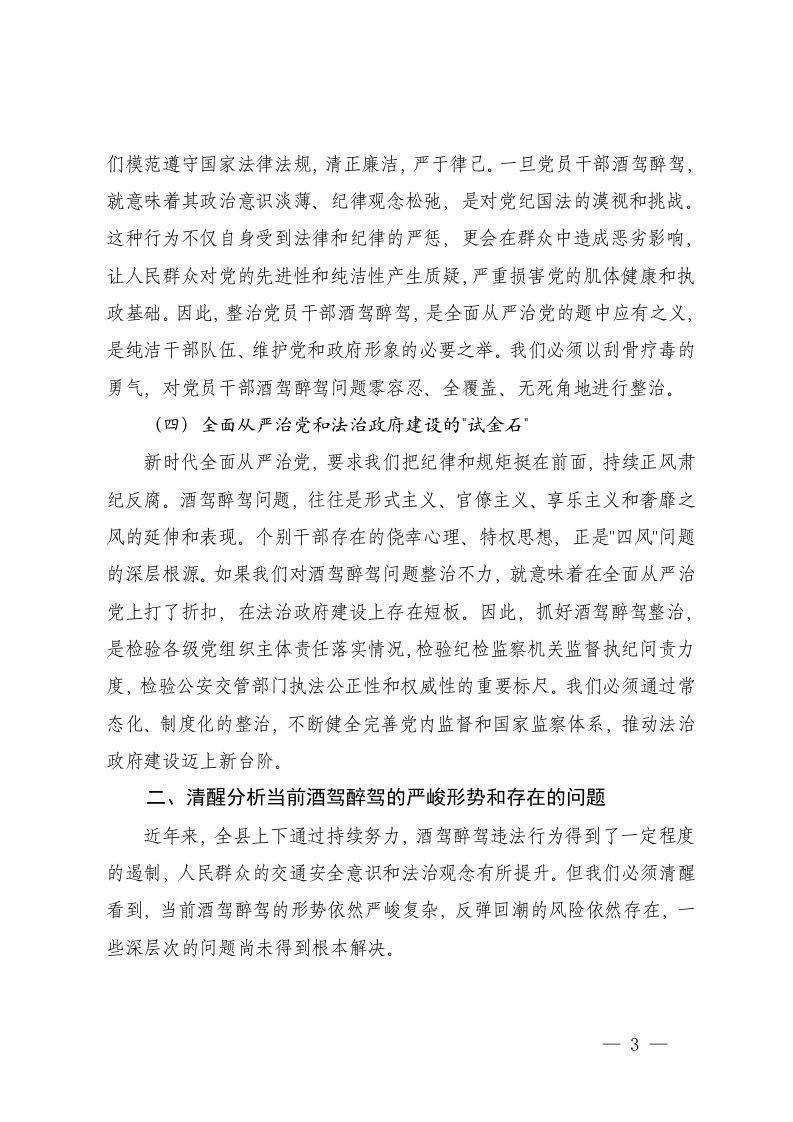 标题:2025年在全县整治酒驾醉驾警示教育会议上的讲话