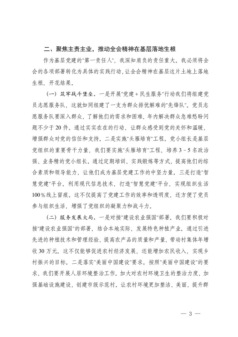 标题:基层党支部书记学习党的二十届四中全会精神研讨发言
