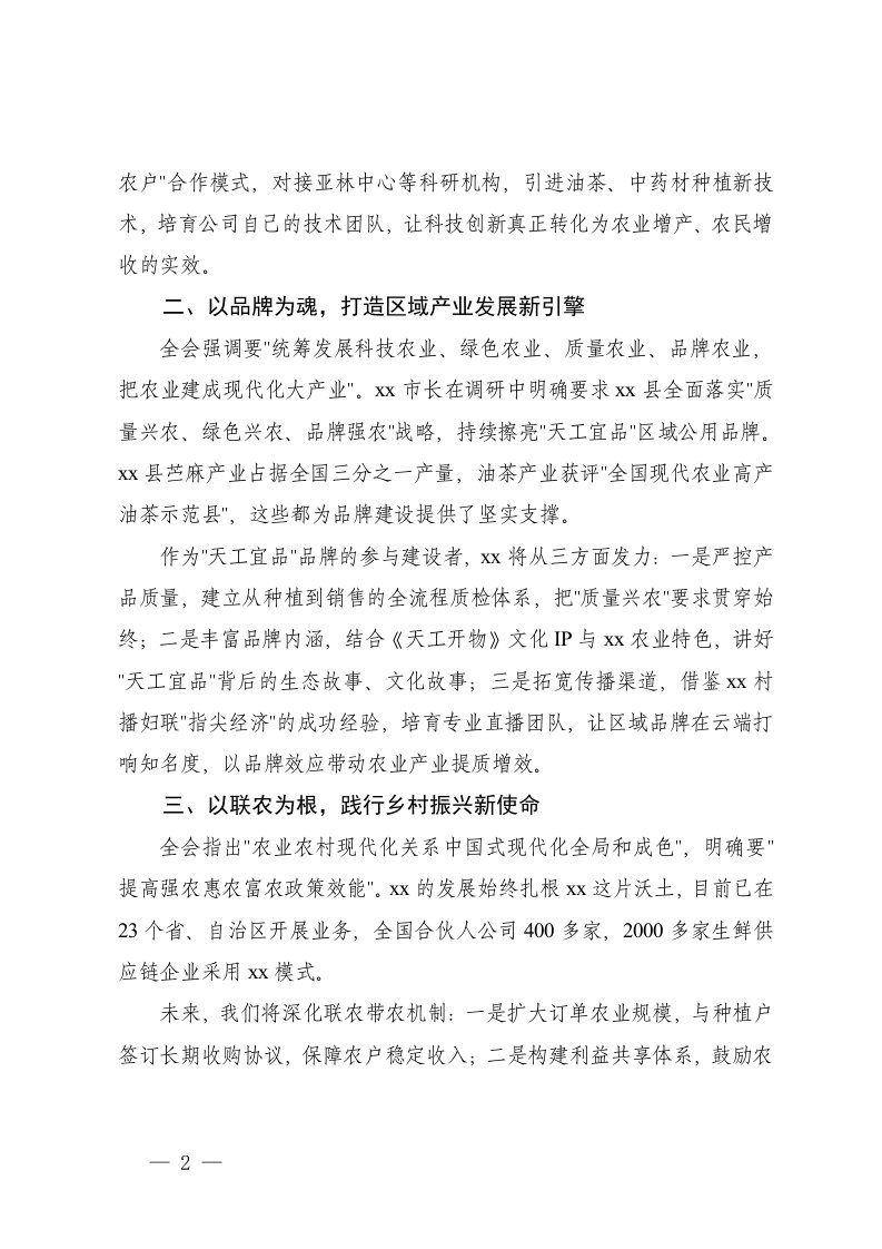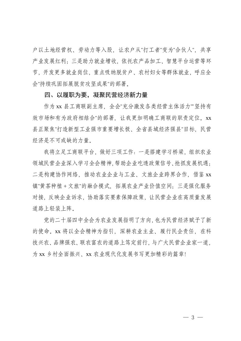 标题:县工商联副主席集团董事长学习贯彻党的二十届四中全会精神心得体会农业产业