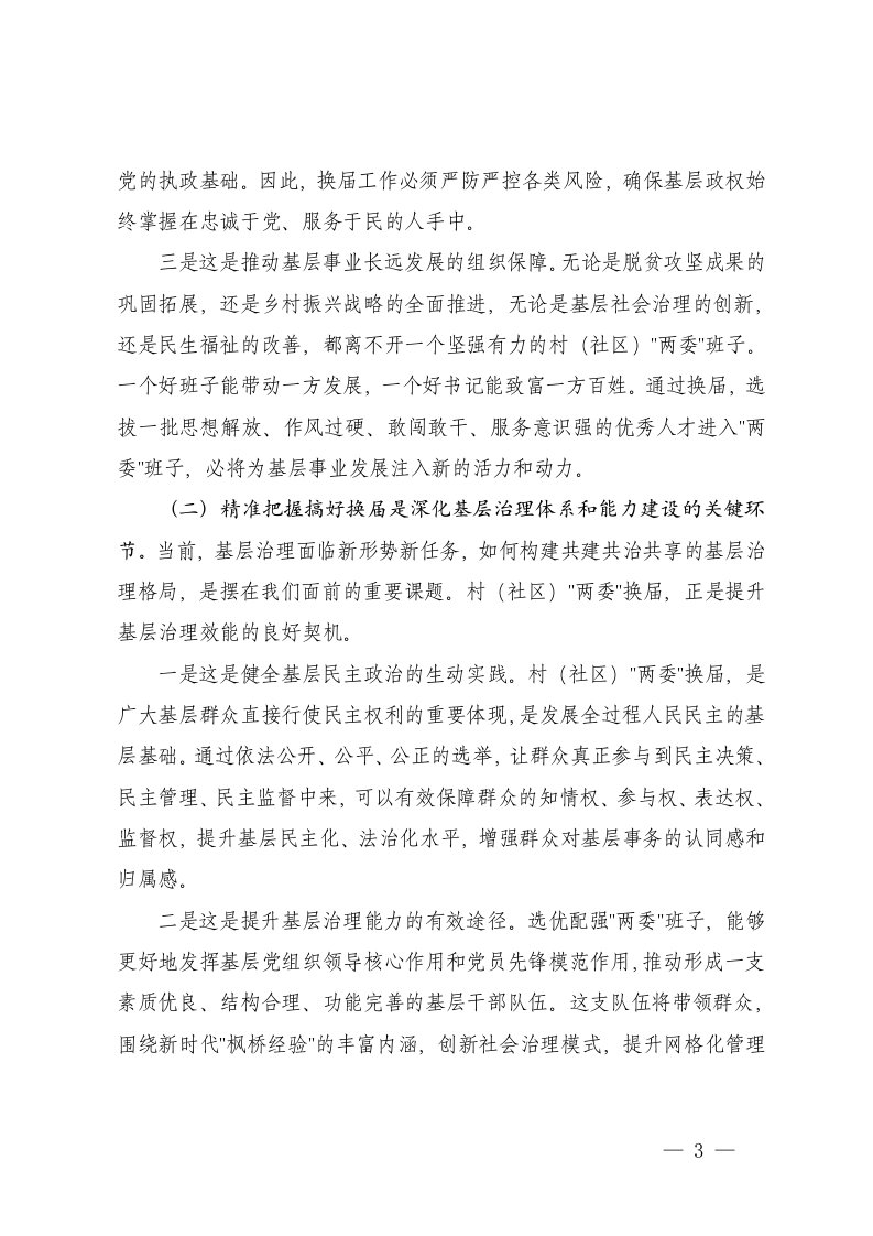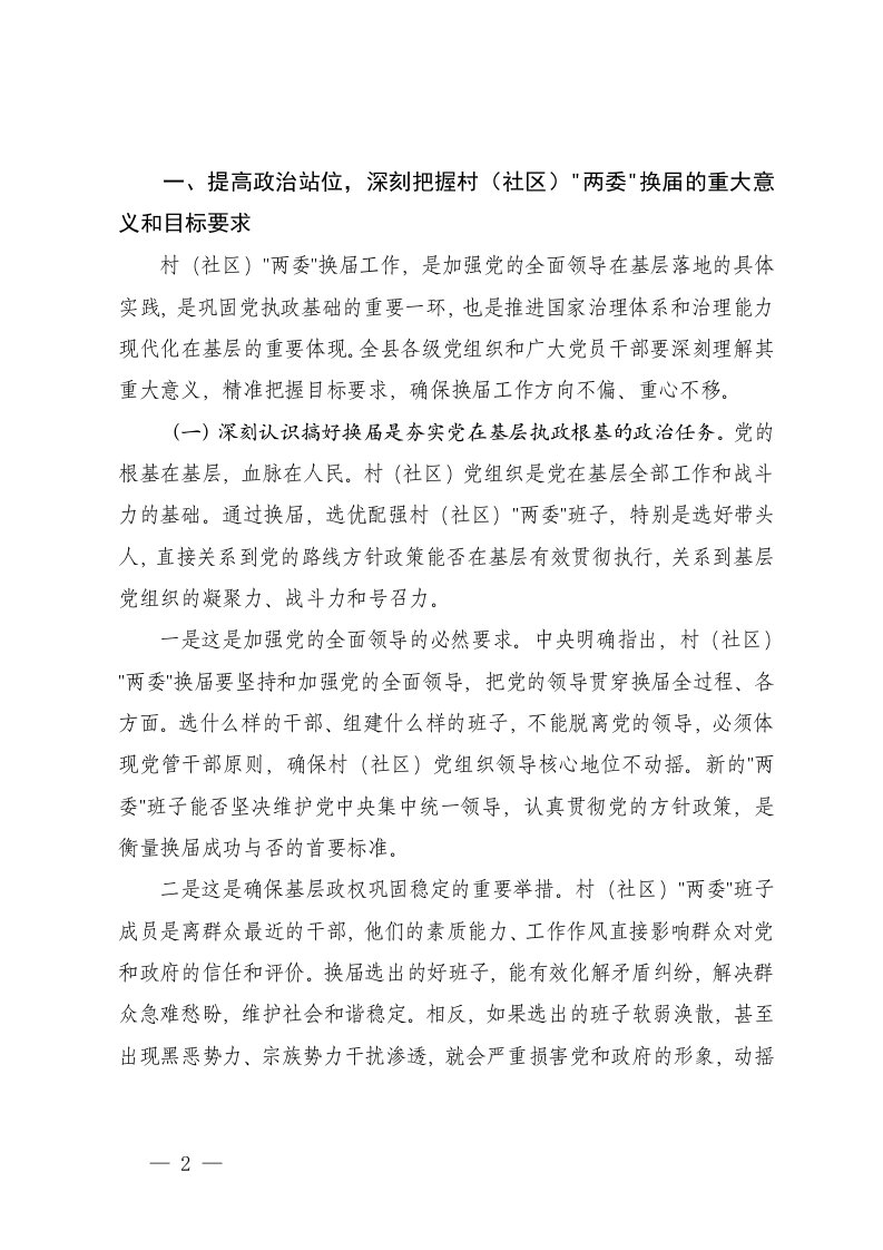 标题:在全县村社区两委换届工作部署会议上的讲话村两委班子任职以来工作述职报告