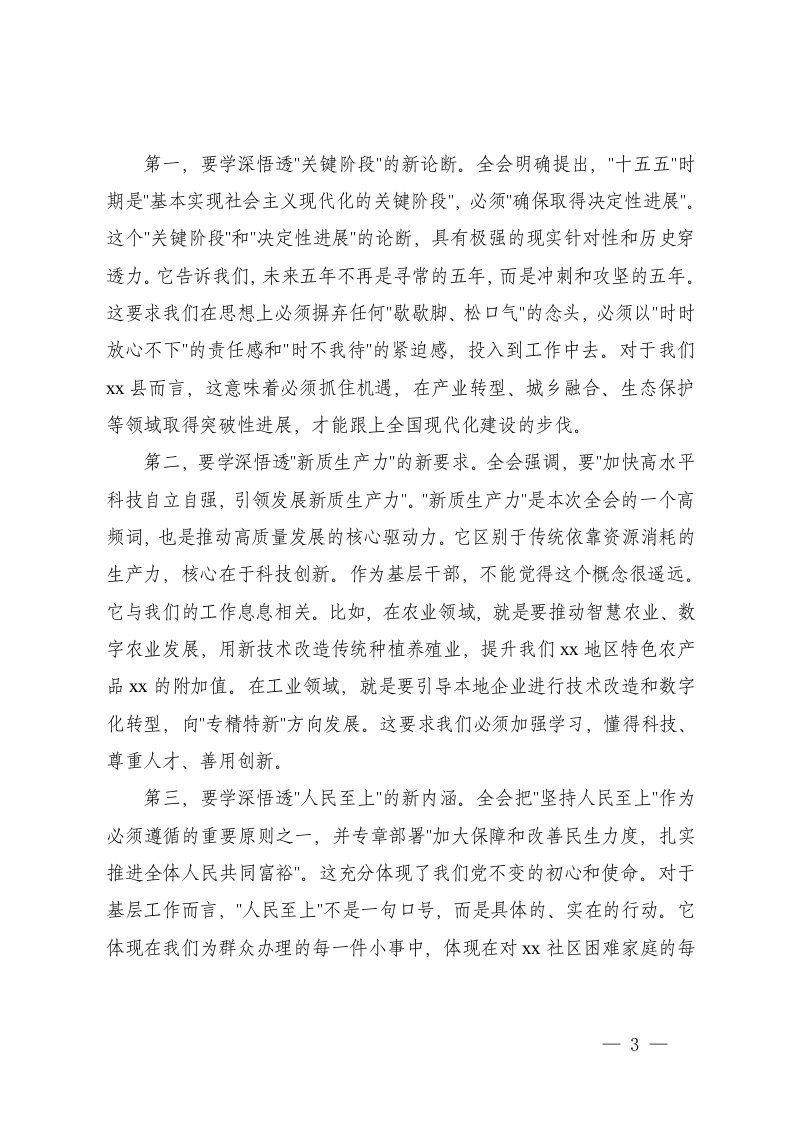 标题:在学习贯彻党的二十届四中全会精神专题研讨会上的发言
