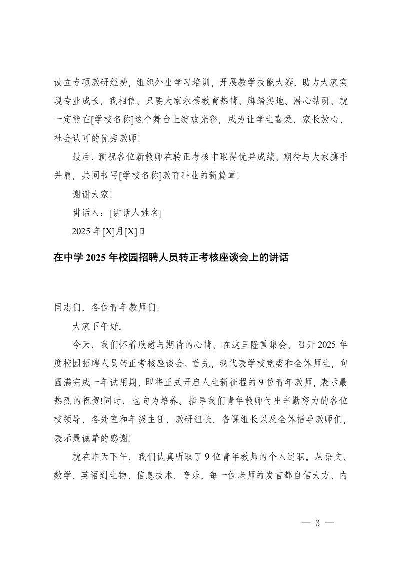 标题:2篇在中学2025年校园招聘人员转正考核座谈会上的讲话