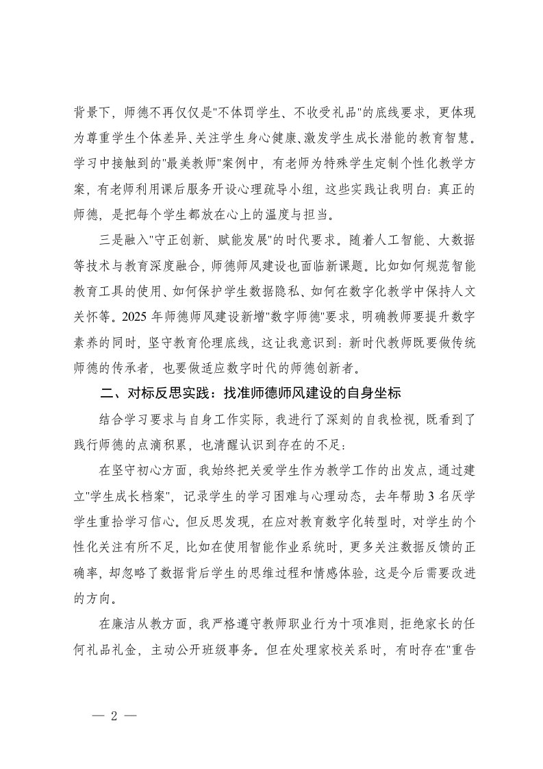 标题:2025年关于加强新时代师德师风建设的学习心得体会