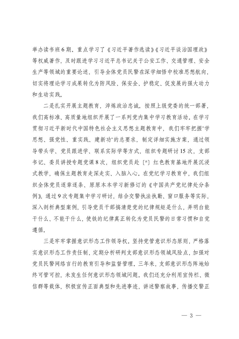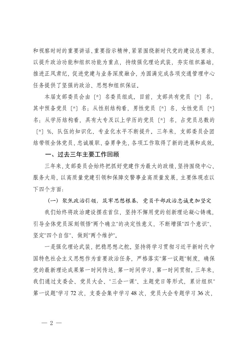 标题:2025年交通警察大队某党支部委员会换届选举工作报告公司党支部换届选举工作报告