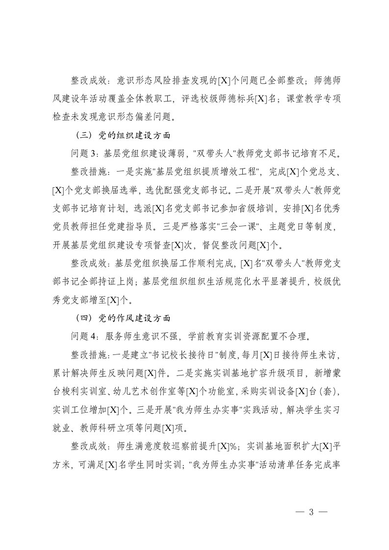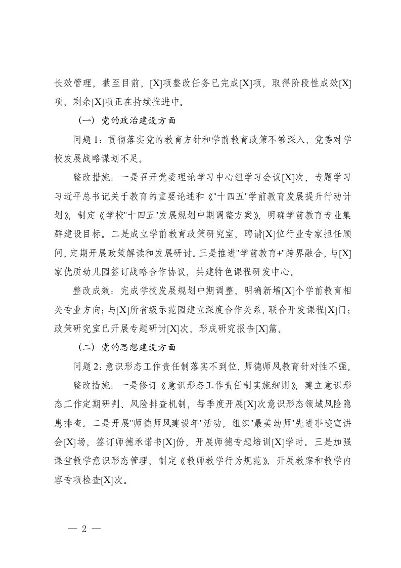 标题:2025年幼儿师范学校党委关于巡察整改情况的报告