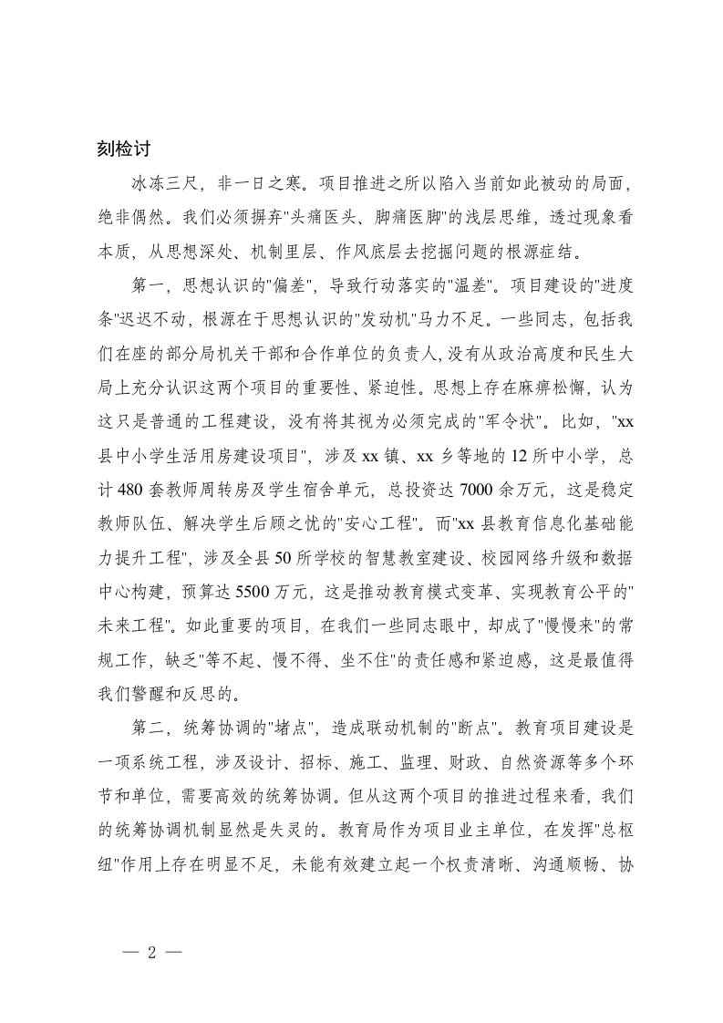标题:2025年在县教育局项目推进滞后问题整改推进会议上的讲话
