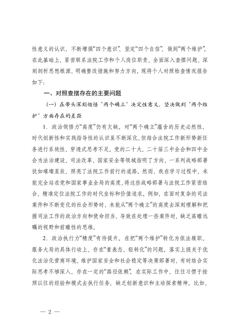 法院干部聚焦六个带头2025年度民主生活会个人发言提纲在带头深刻领悟两个确立决定性意义坚决做到两个维护方面存在的差距