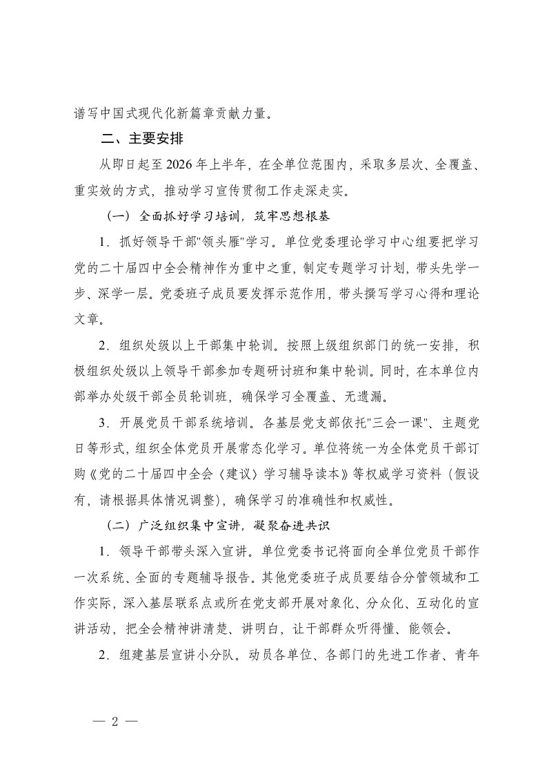 标题:机关单位学习宣传贯彻党的二十届四中全会精神实施方案及研讨发言