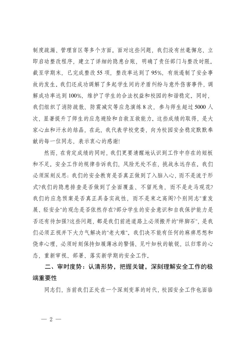 标题:在中学2025-2026学年第一学期校园安全管理工作专题会议上的讲话