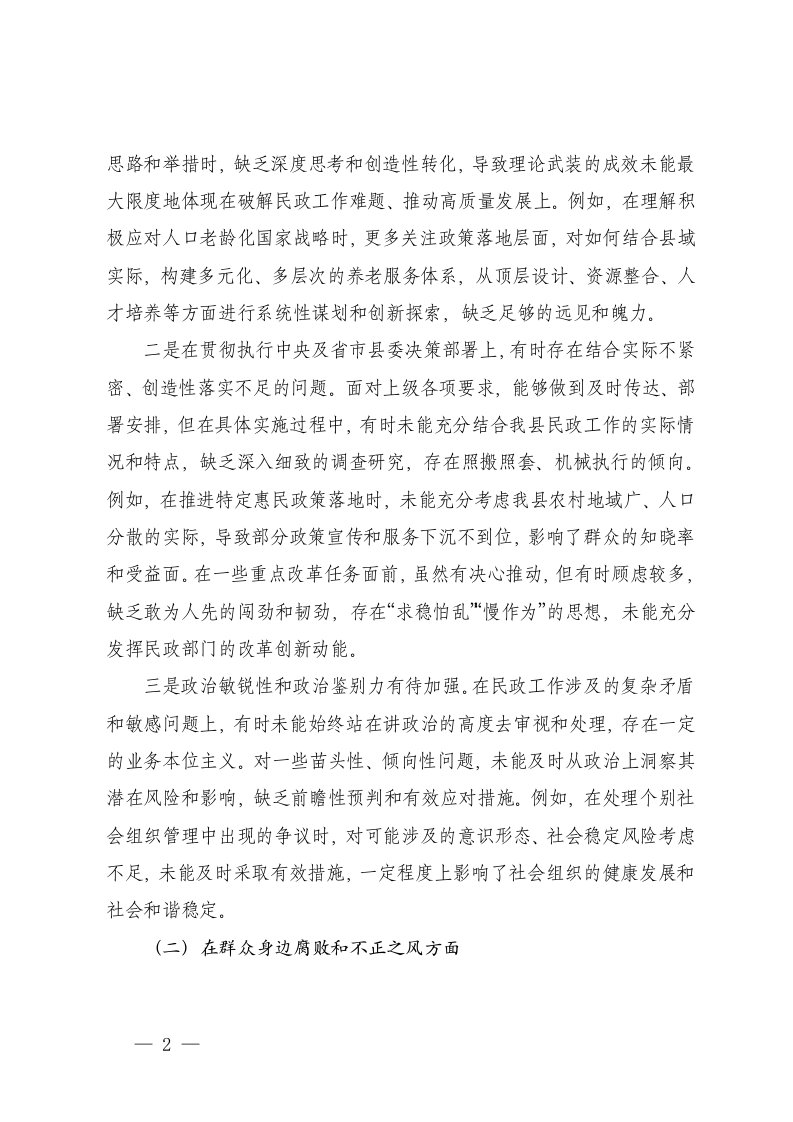镇党委班子在贯彻落实党的路线方针政策和党中央重大决策部署方面巡察整改专题存在的主要问题及整改措施