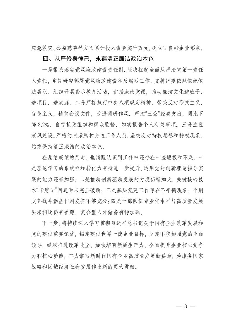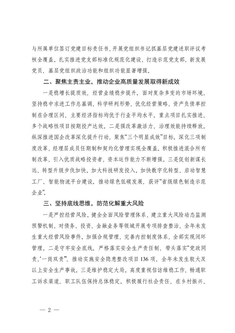标题:2篇2025年度国企党委书记董事长个人述职报告