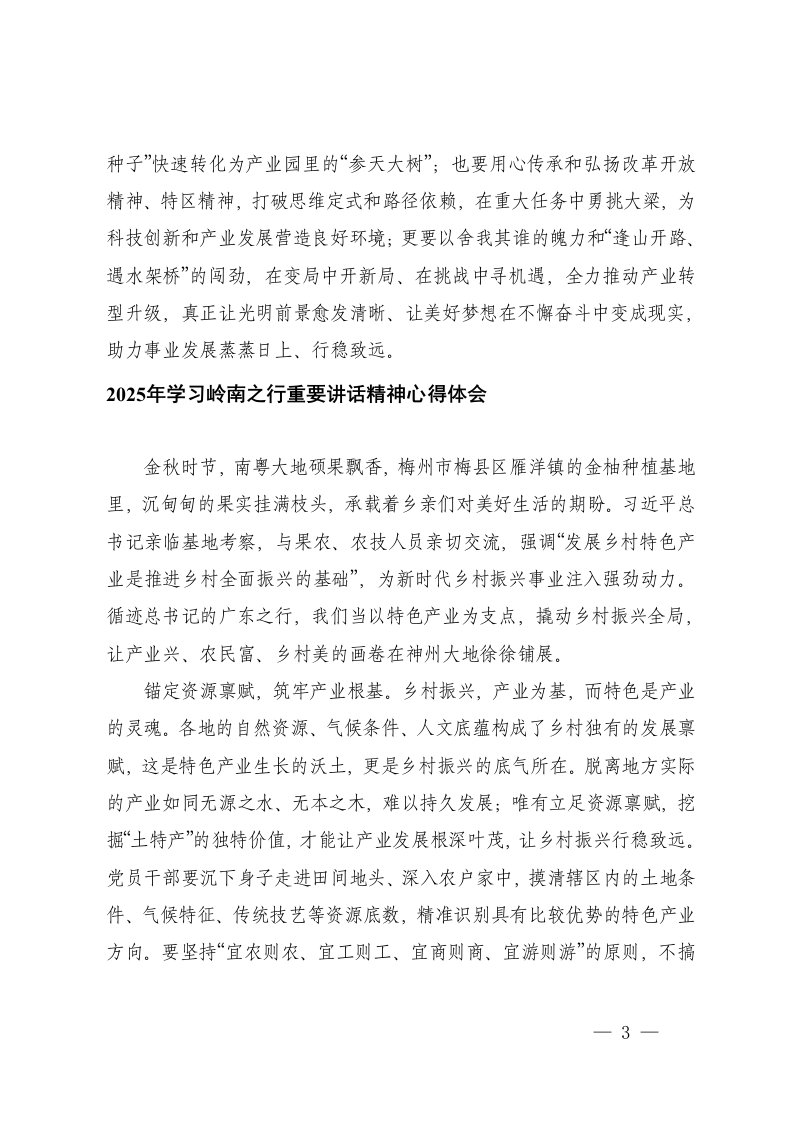 标题:4篇2025年学习岭南之行重要讲话精神心得体会