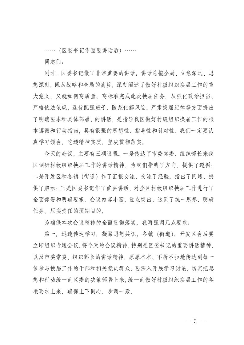 标题:镇党委书记在村两委换届集体谈话会上的讲话提纲主持词