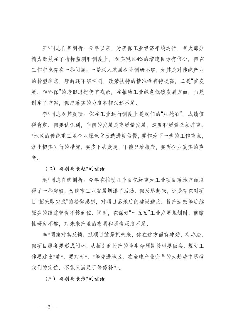 标题:11月局2025年度民主生活会会前谈心谈话记录