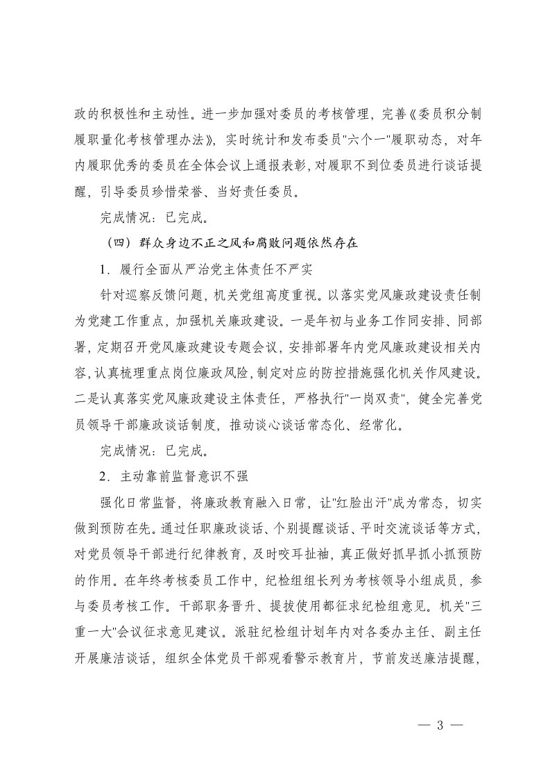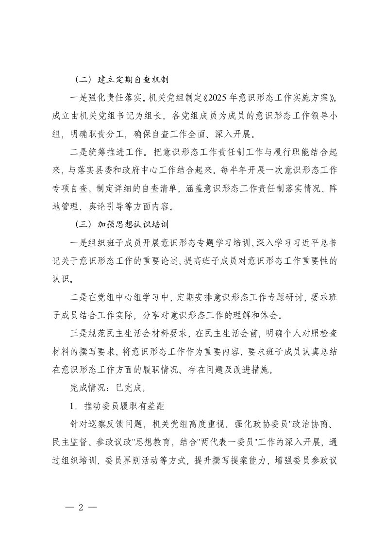 标题:2025年11月政协机关党组关于巡察整改情况的报告