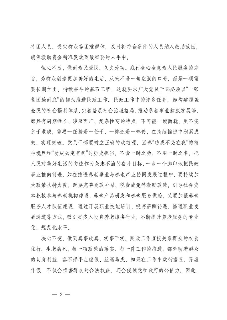 标题:2025年党员干部学习习近平关于民政工作论述摘编心得体会