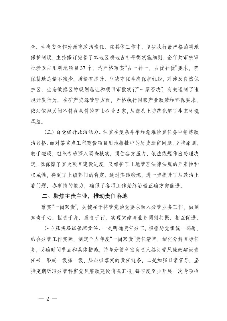 2025年县委副书记履行党建和党风廉政建设一岗双责工作情况汇报全面从严治党一岗双责情况报告