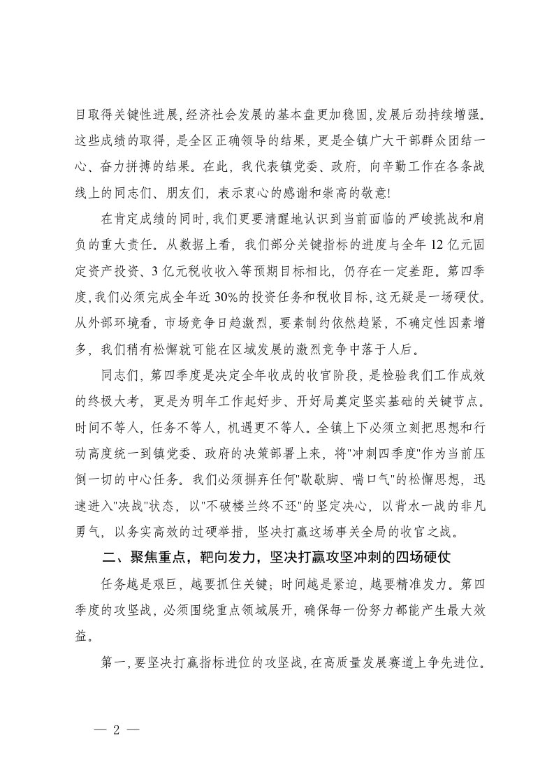 标题:2025年在乡镇冲刺四季度夺取全年胜工作推进会上的讲话