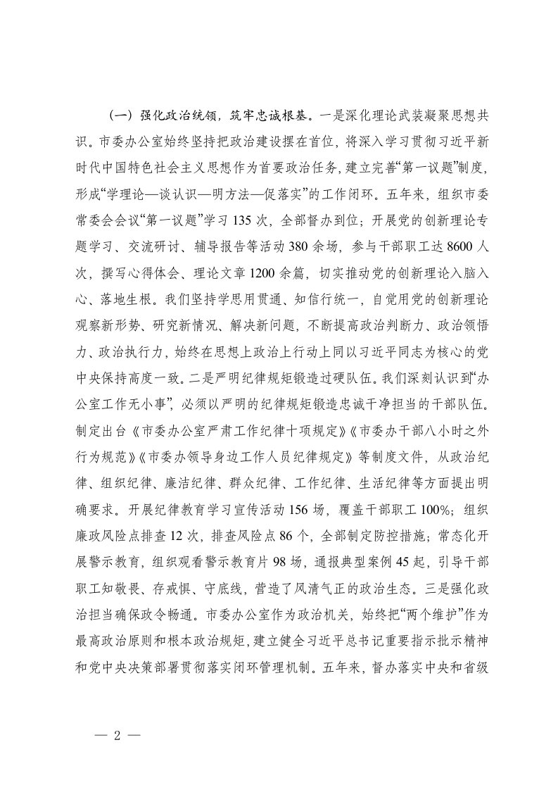 XX督查室主任在市委办公室机关党...