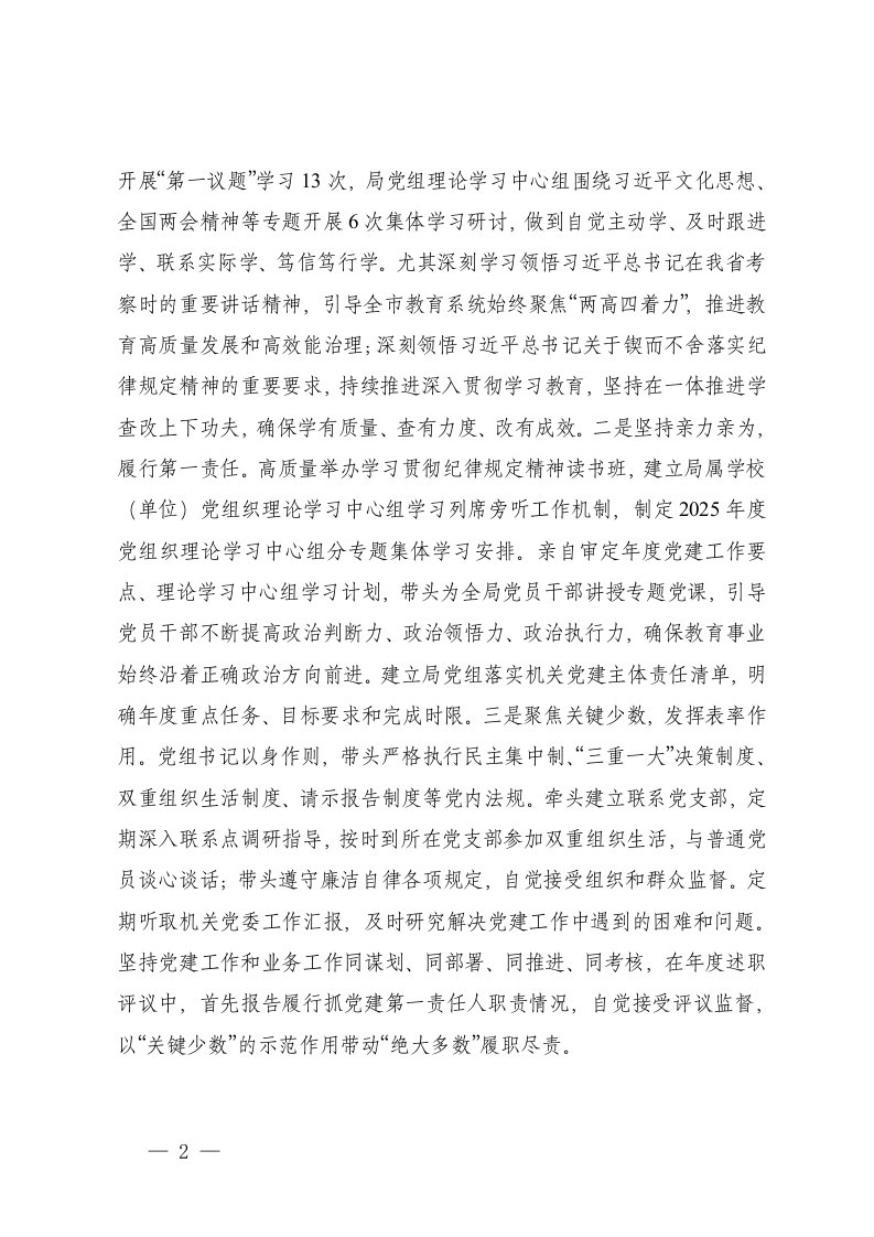 标题:通用教育局党组2025年抓基层党建工作述职报告