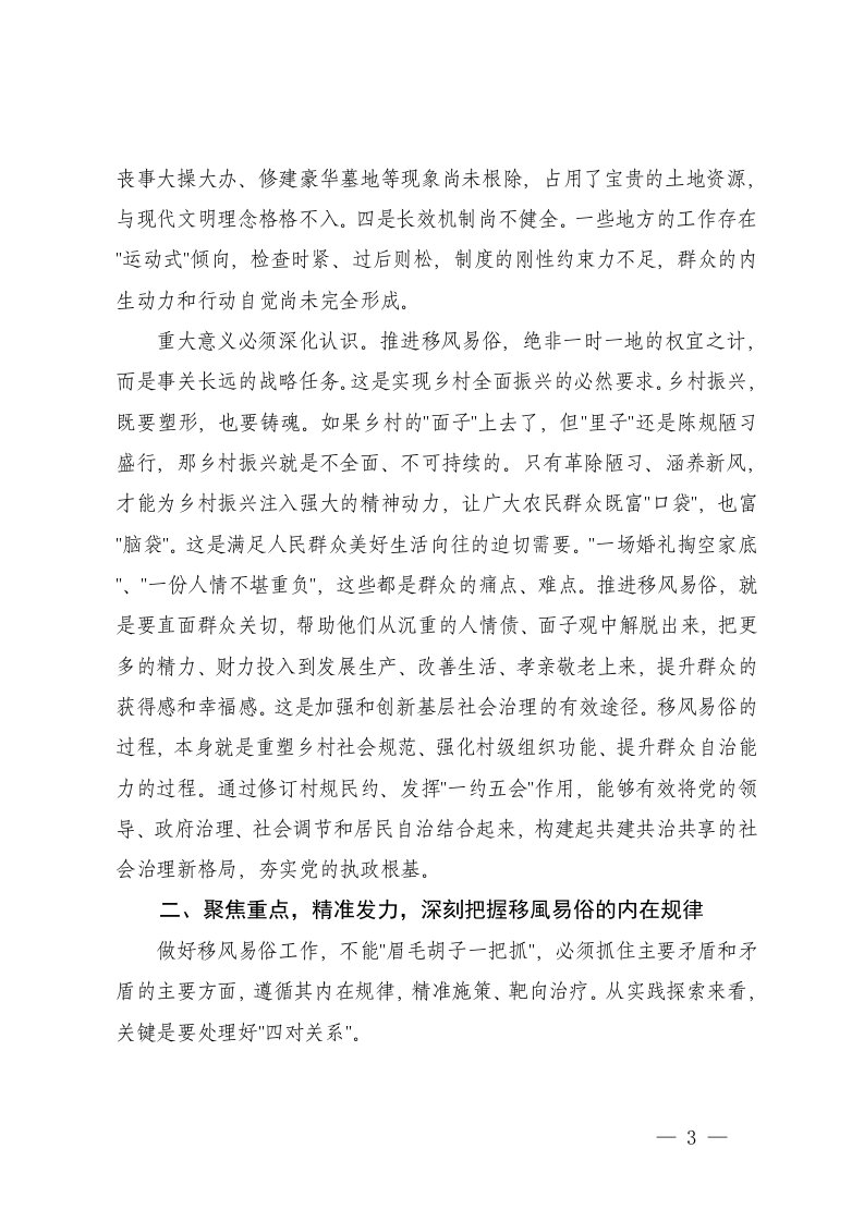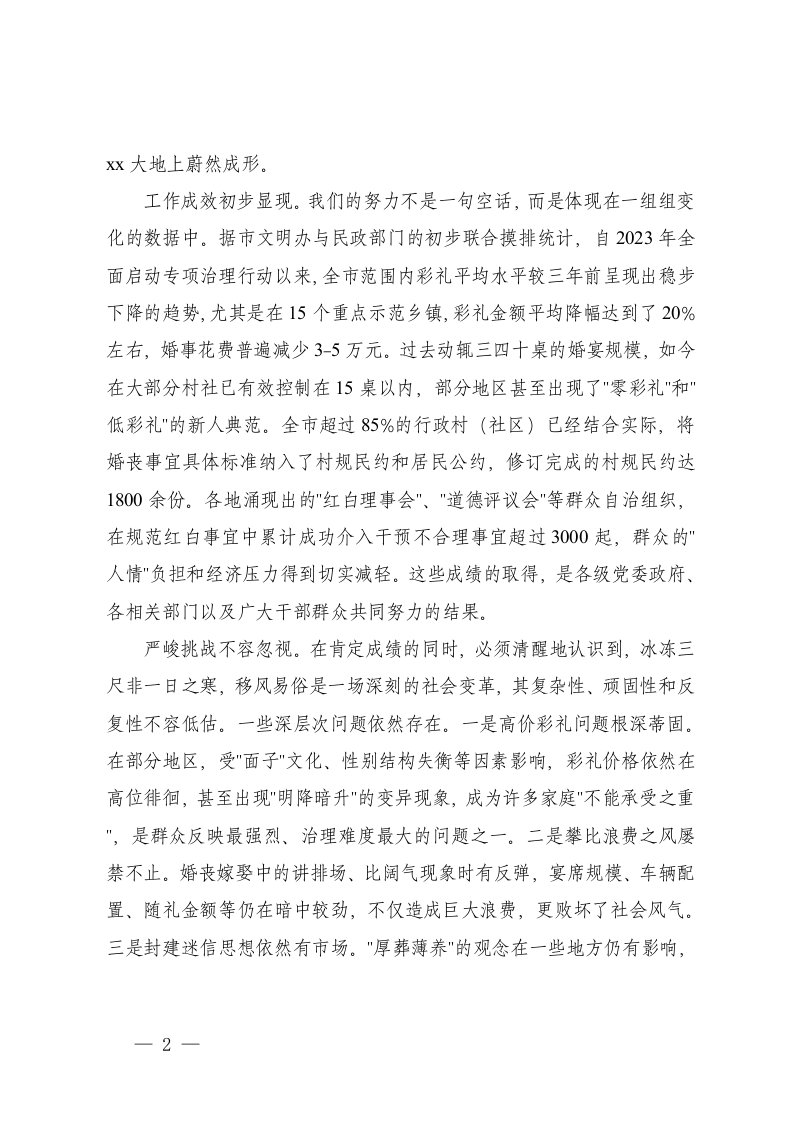 标题:在2025年移风易俗工作推进会上的讲话2024年至2025年移风易俗工作情况的报告