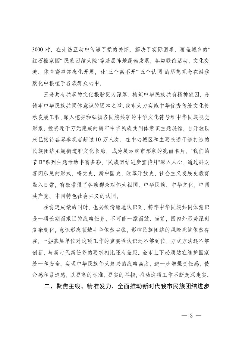 在铸牢中华民族共同体意识基层实践推进会上的讲话第四季度统战工作部署会议上的讲话