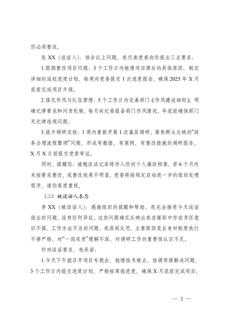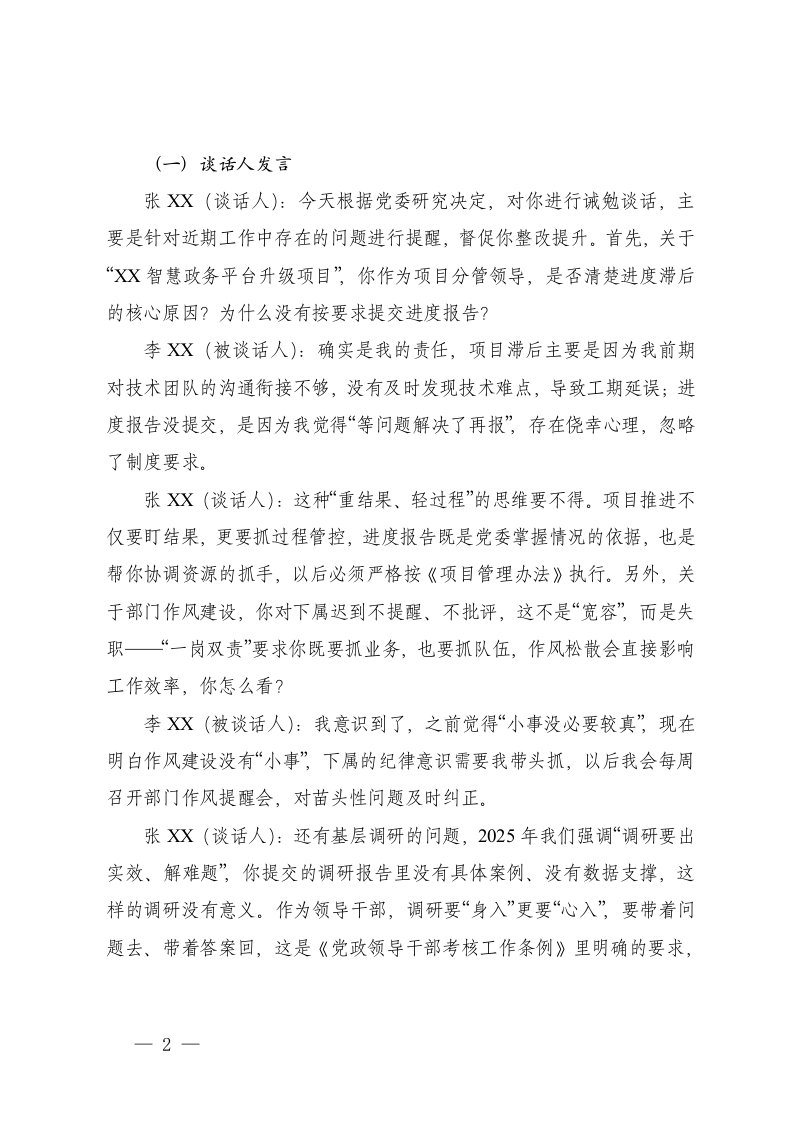 标题:2篇2025年11月领导干部诫勉谈话记录
