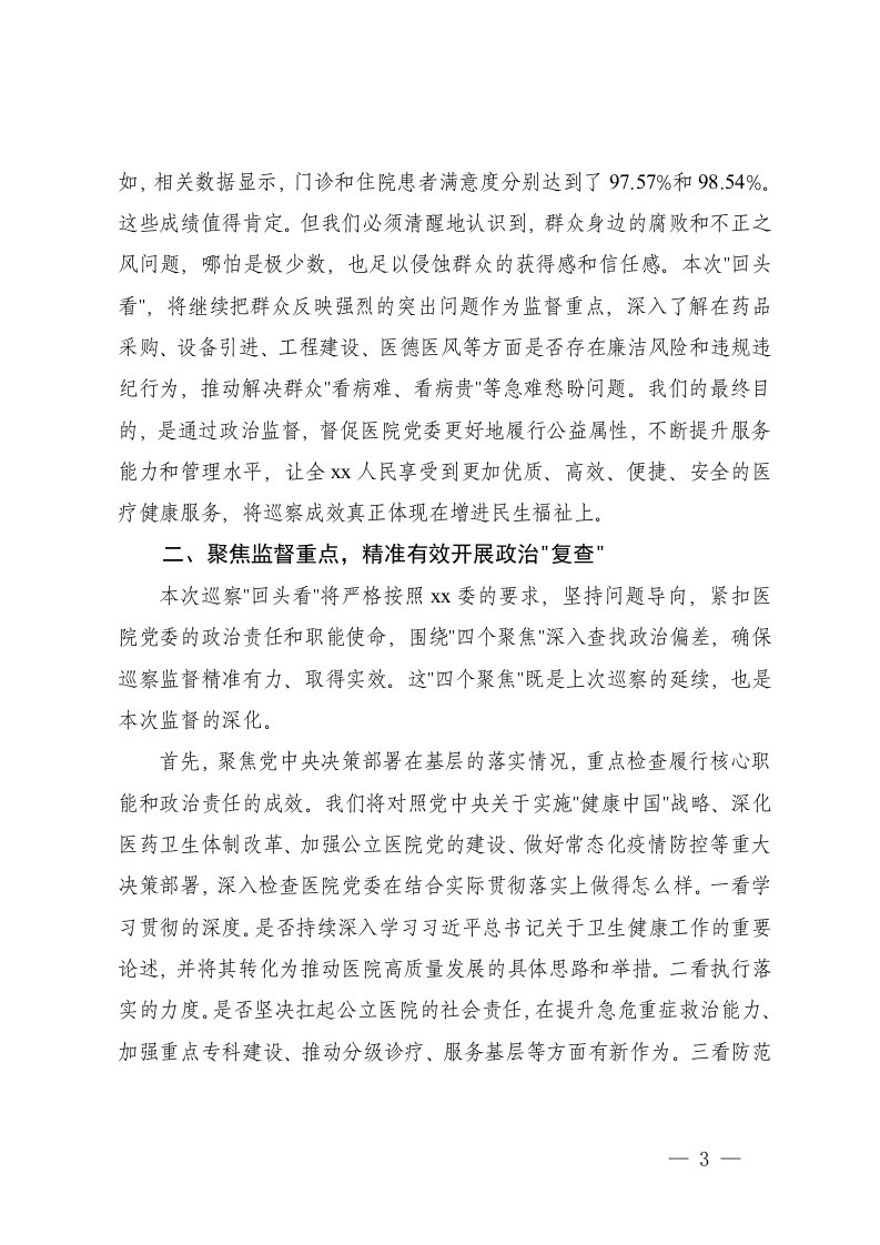 医院,工作,讲话,巡察,党委,动员会2025年在医院党委巡察回头看工作动员会上的讲话医院,工作,讲话,巡察,党委,动员会2025年在医院党委巡察回头看工作动员会上的讲话