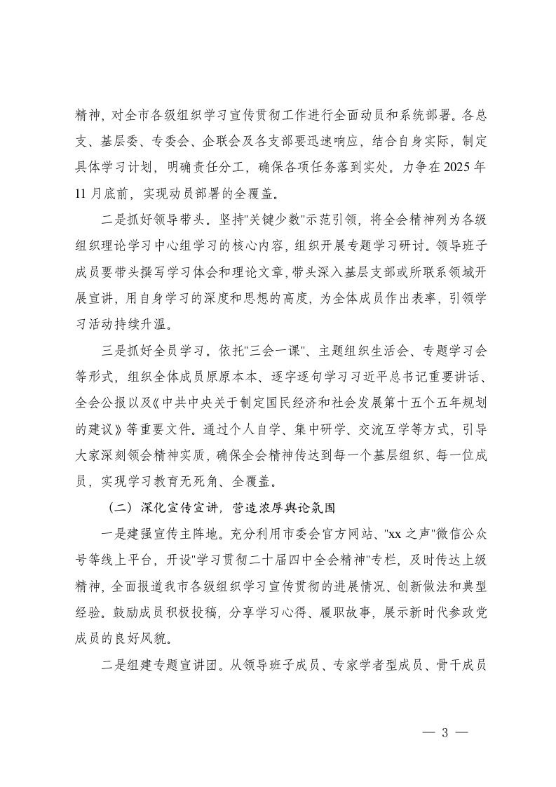 标题:2025年市委教育局学习宣传贯彻党的二十届四中全会精神工作方案