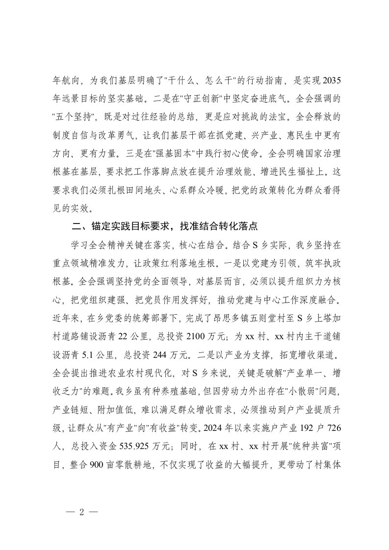 标题:乡镇党委书记领导基层人员学习党的二十届四中全会精神心得体会