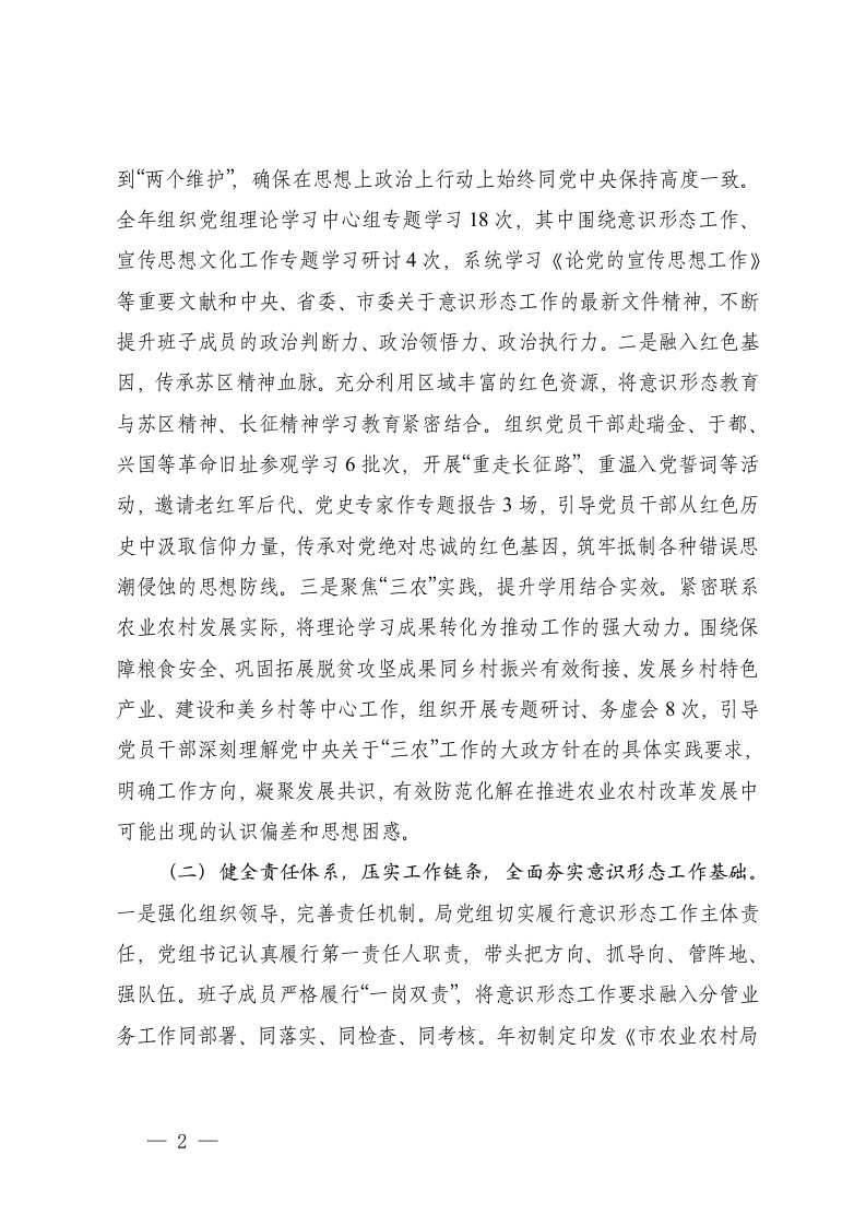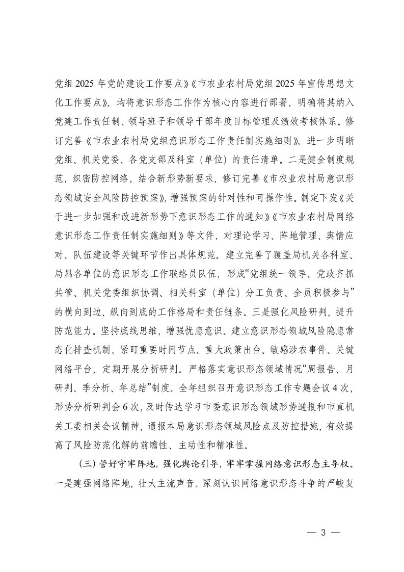 标题:3篇局党组2025年落实意识形态工作责任制情况报告