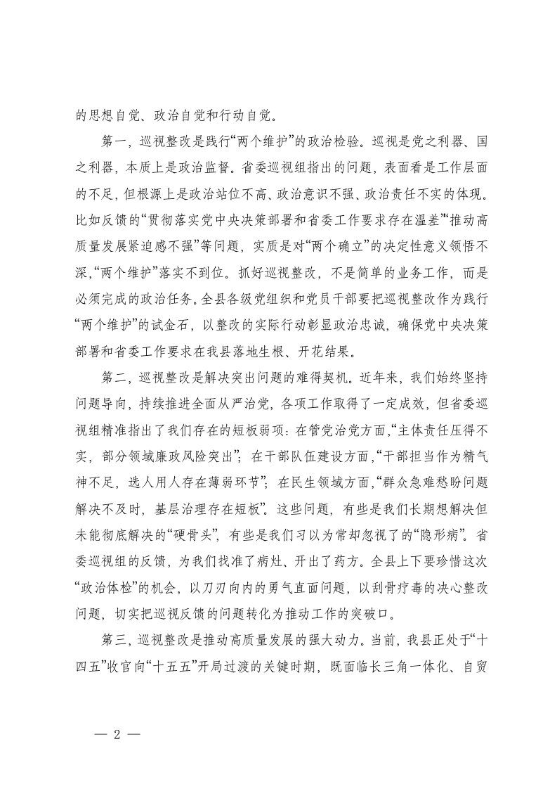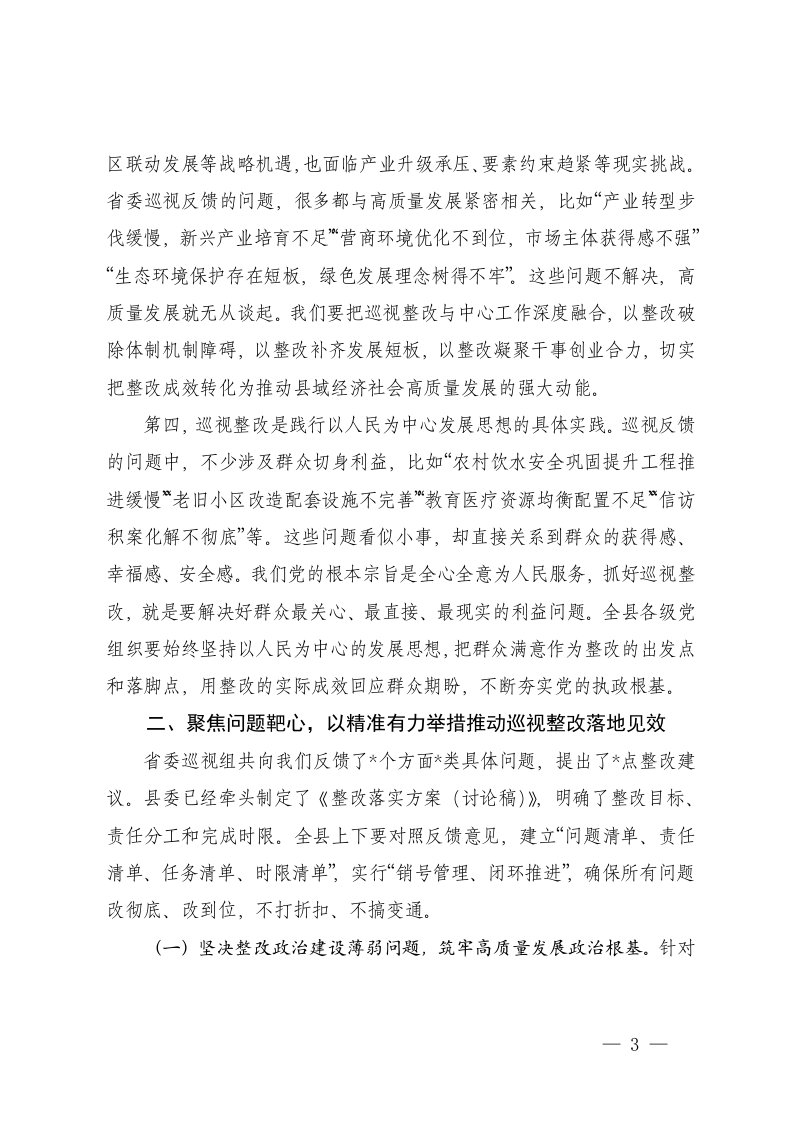标题:3篇2025年县委书记在省委巡视反馈问题整改专题会议上的讲话