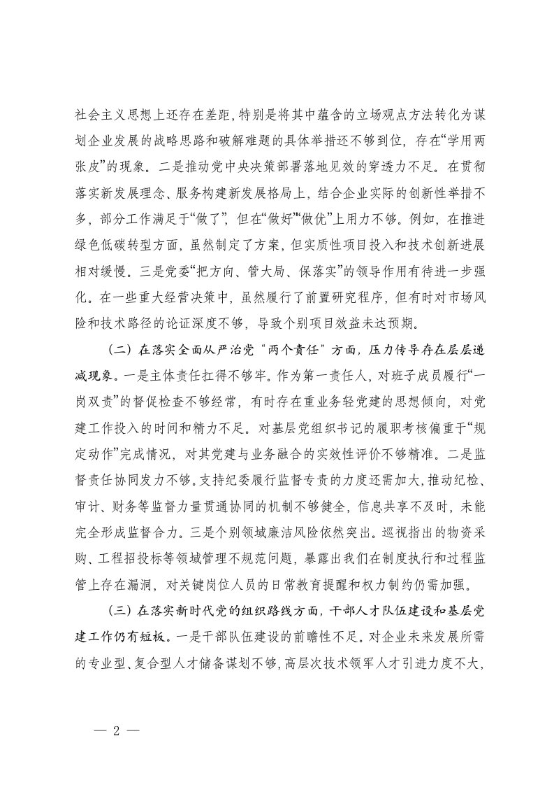 国企党委,民主生活会,对照检查材料,对照检查,国企,巡视,党委,意见,党委书记,反馈意见,生活,方针政策,贯彻落实,专题民主生活会,重大决策,专题,材料2025年国企党委书记巡视反馈意见整改专题民主生活会对照检查材料在贯彻落实党的理论和路线方针政策党中央重大决策部署方面政治引领作用发挥不够充分国企党委,民主生活会,对照检查材料,对照检查,国企,巡视,党委,意见,党委书记,反馈意见,生活,方针政策,贯彻落实,专题民主生活会,重大决策,专题,材料2025年国企党委书记巡视反馈意见整改专题民主生活会对照检查材料在贯彻落实党的理论和路线方针政策党中央重大决策部署方面政治引领作用发挥不够充分