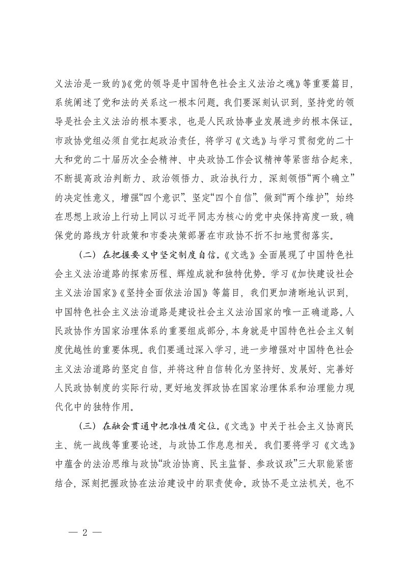 2025年学习习近平法治文选第一卷交流发言心得体会坚持学思用贯通知信行统一着力提高法治能力